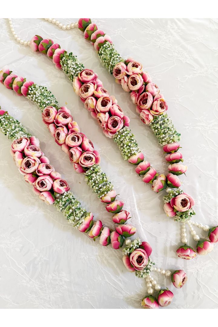Baby Breath Flower Wedding Varmala with Ivory Roses