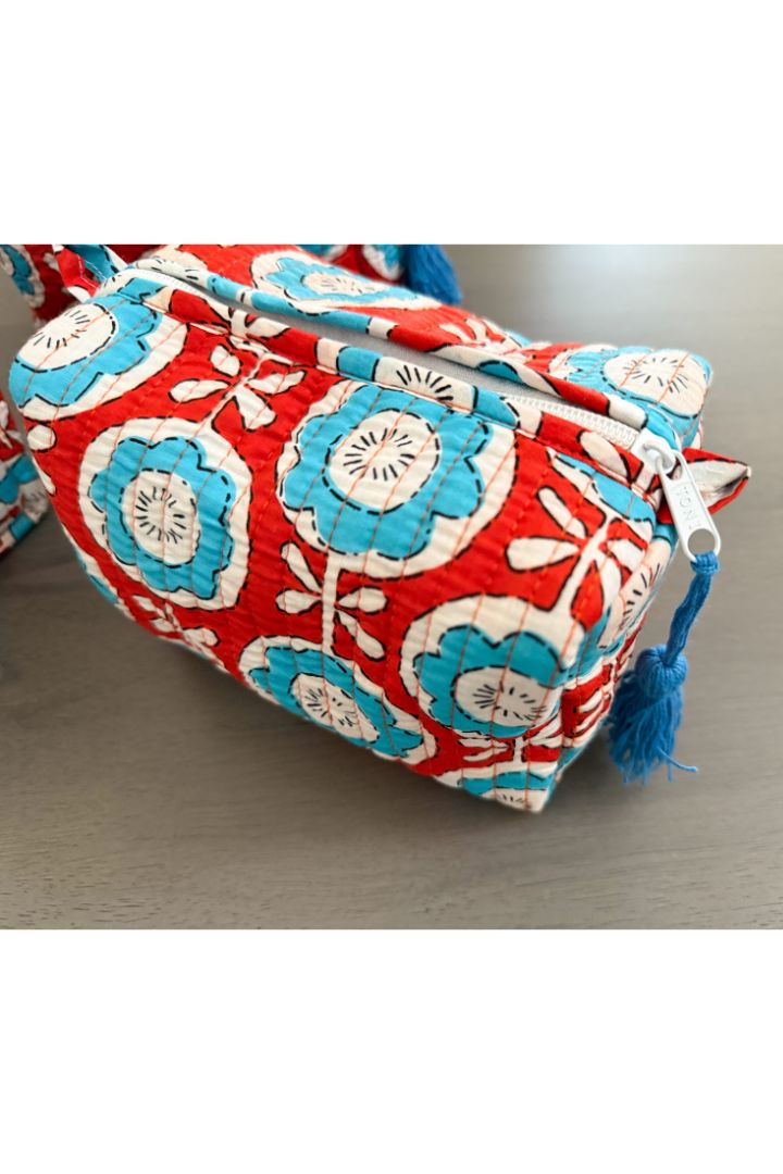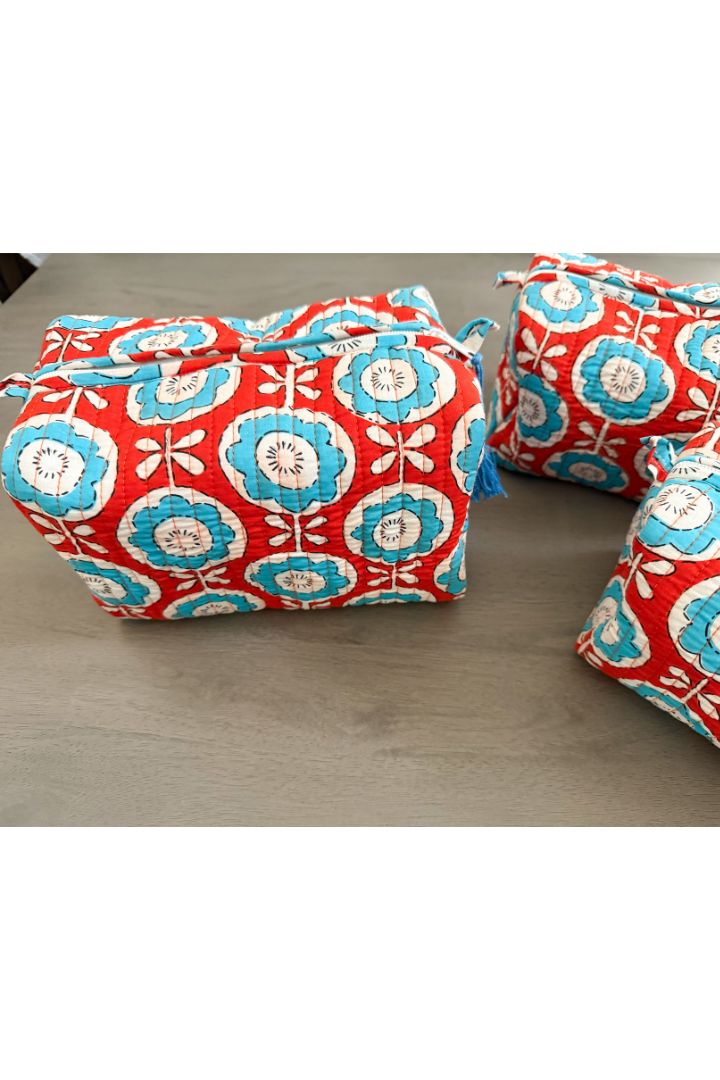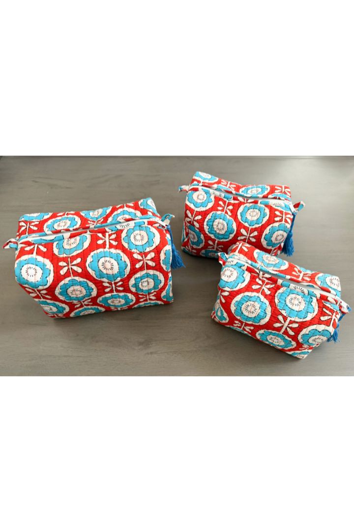 Set of 3 Flower Print Quilted Cotton Cosmetic,Travel, Toiletry Bags
