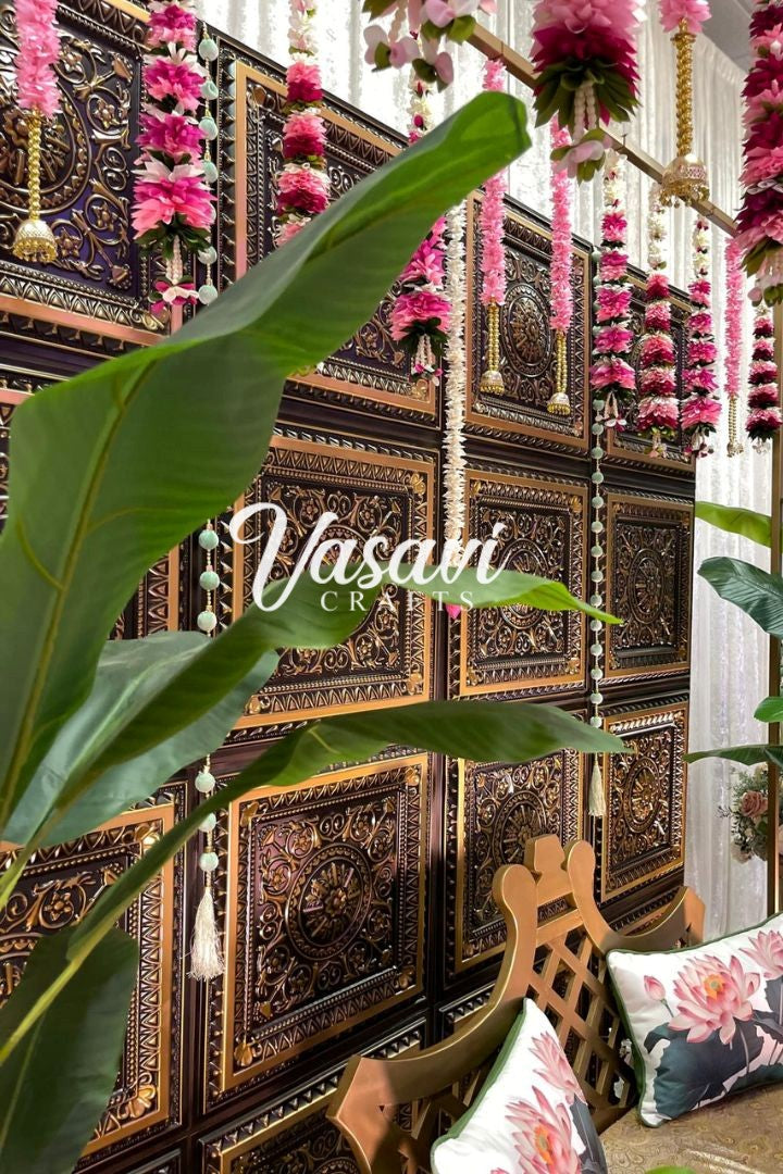 Flower Garlands with Gold Jhumka Hanging for, Indian Wedding Decorations, Mehndi, Festive Decor, Ceiling Decor, Mandap Decor