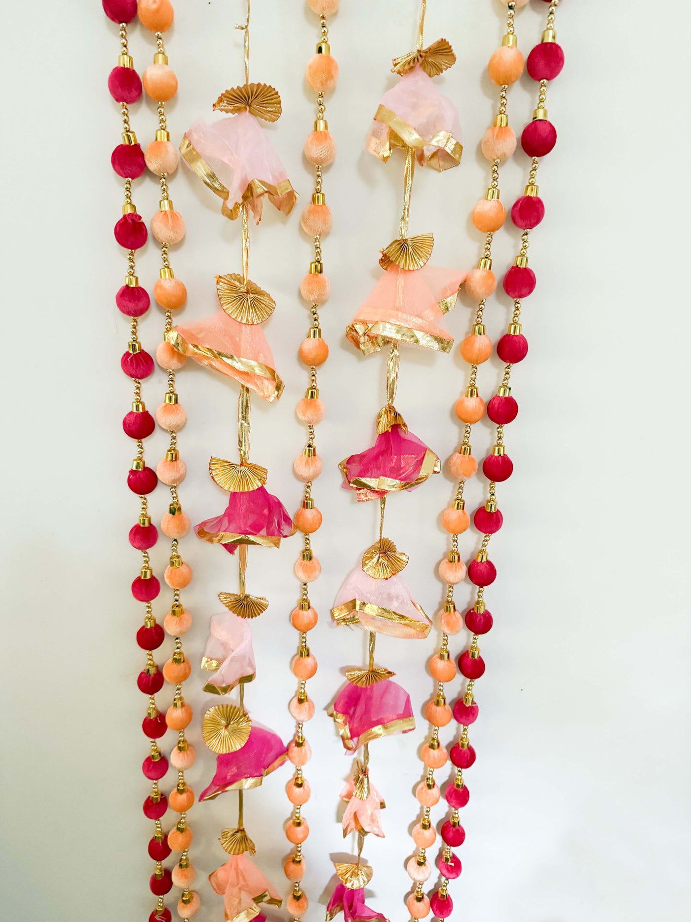 Multicolor frill garlands made with net fabric. Perfect for Indian Wedding Mehndi Backdrop.